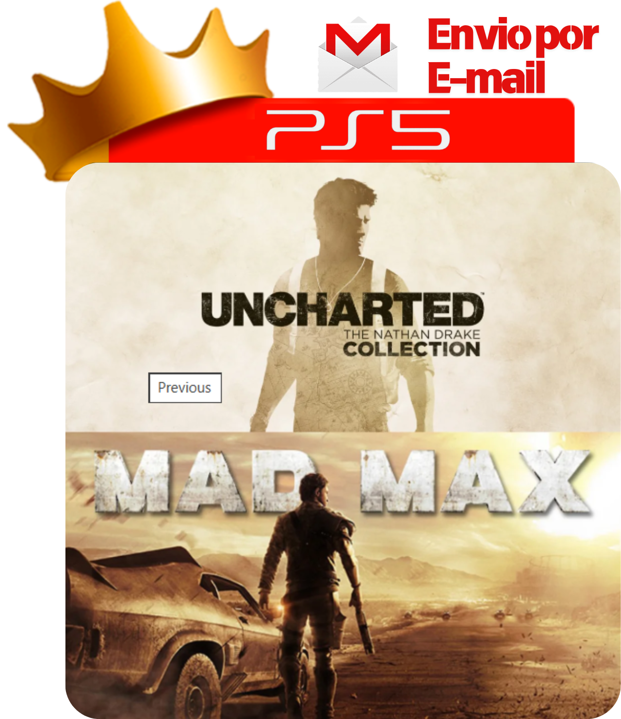 Tamanho do Arquivo: Aproximadamente 90 GB no total (Uncharted: The Nathan Drake Collection com cerca de 44 GB e Mad Max com cerca de 45 GB; pode variar conforme atualizações).